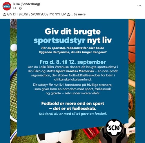gennem Bilkas indsamling til fordel for Sport Creates Memories.