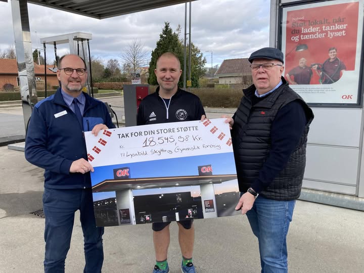 Inde i OK app kan man vinge af ved Lysabild Skytte og Gymnastik forening og dermed støtte når man tanker / lader / vasker bil osv.